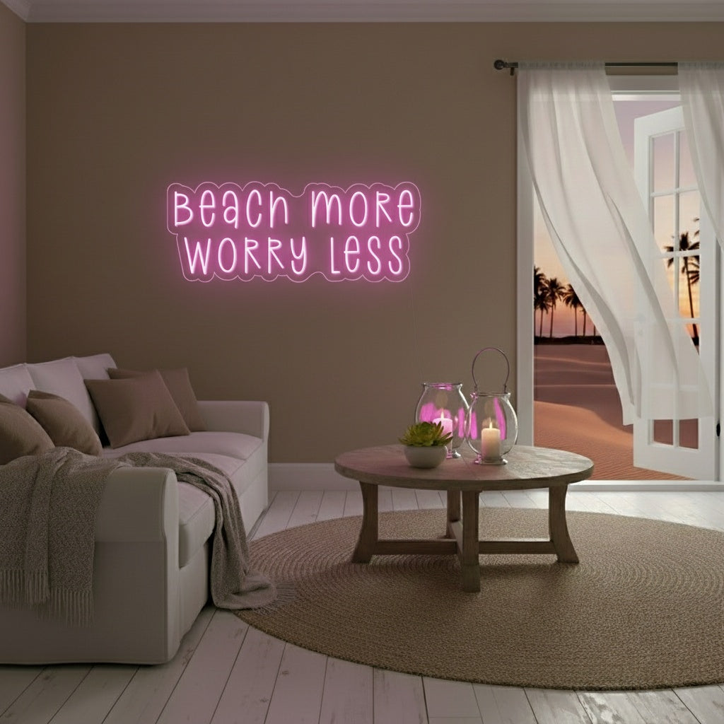 Beach More Worry Less LED Neon Sign, Beach Theme Neon Sign