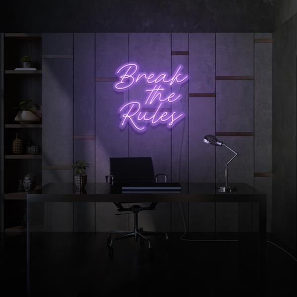Make a bold statement with our "Break the Rules" LED Neon Sign. Perfect for those who embrace individuality and a rebellious spirit, this sign lights up your space with an empowering message. Whether you're outfitting a creative workspace, home bar, or lounge, this modern design adds an edgy, motivational vibe. The energy-efficient LED technology ensures a long-lasting, vibrant glow, making it both a stylish and practical addition to any environment. Break free from the ordinary and let your space reflect your bold attitude.